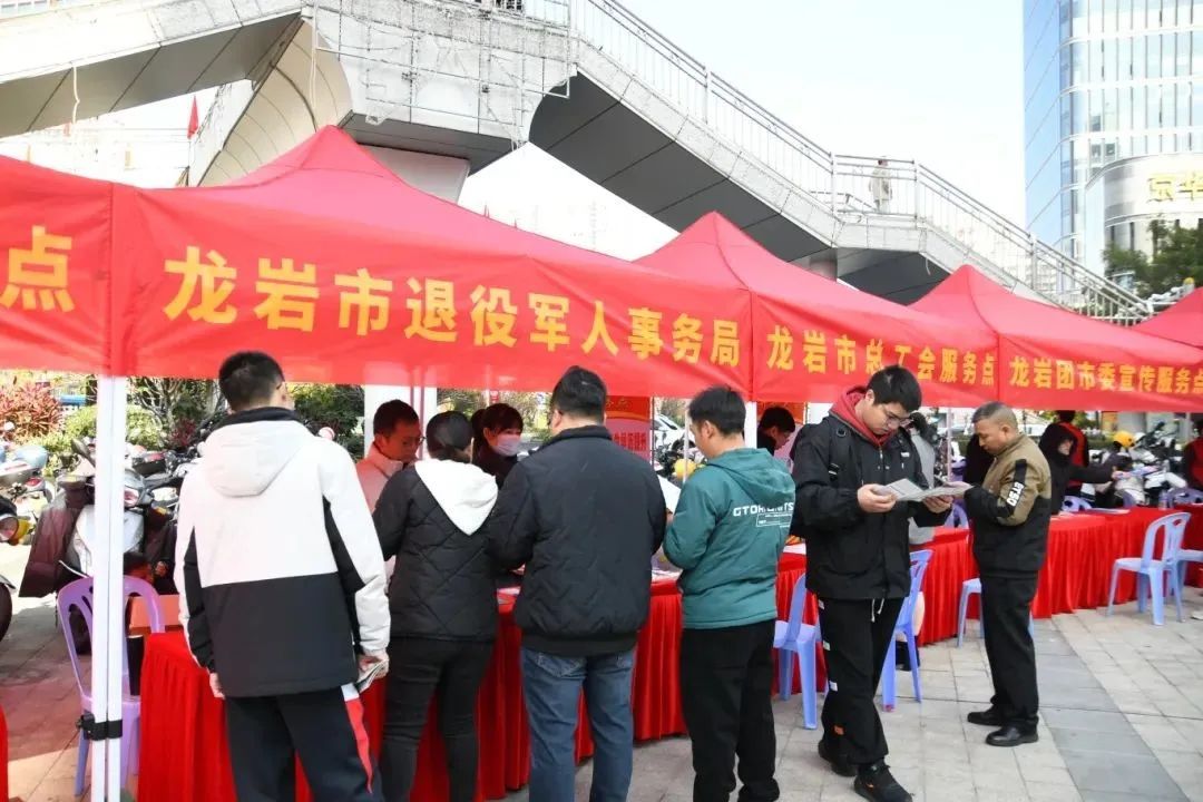 2月5日,由龙岩市退役军人事务局、市人力资源和社会保障局联合主办的“福在闽西职等你来”2025年龙岩市中心城区“春风行动”大型人力资源现场招聘会在万宝广场顺利举办。
