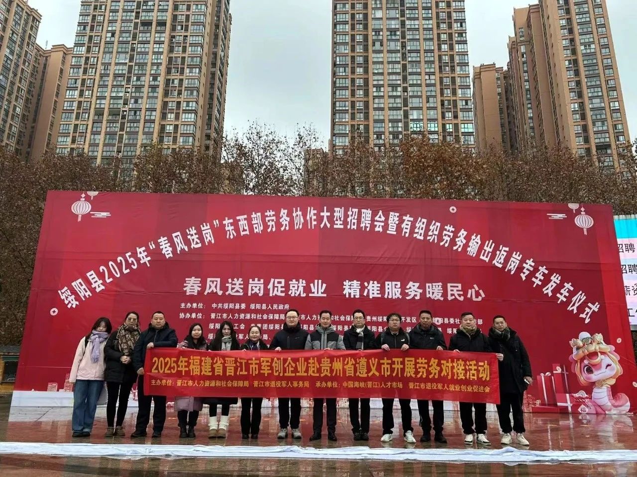 为助力军创企业在新一年顺利开局,充分把握务工人员返岗和企业招工的关键时期,2月5日至9日,由晋江市退役军人事务局、市人社局主办的贵州省劳务招聘活动正式启动。此次活动吸引了华联集团等7家军创企业踊跃参与,这些企业的人事负责人组成“军创企业招工小分队”,积极与当地劳务市场、人才机构紧密沟通,精准传递企业招聘需求,不仅为企业节后顺利开工提供了人力支持,更为实现“首季大捷”的目标注入强大动力。据了解,招聘会期间,招工小分队先后奔赴贵州省绥阳县、温泉镇、遵义市播州区参与当地举办的劳务招聘会。据统计,本次7家军创企业共提供30余个工种400余个岗位,涉及普工、技工、管理等职位,月薪普遍在4000-9000元之间。晋江市企业除提供免费食宿外,还贴心提供协助入学、医疗补助和积分购房等福利待遇,尽显关怀。