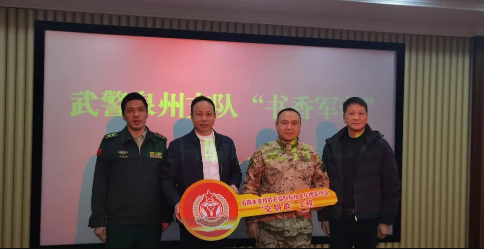 2月10日,石狮市“拥军交钥匙”工程——“基层中队书香军营”项目圆满完成验收并交付武警泉州支队使用。该项目由石狮市双拥办负责代建,总投资30万元,主要用于支持武警泉州支队基层中队文化活动设备配置,切实提高部队整体文化建设水平,丰富官兵精神文化生活。
