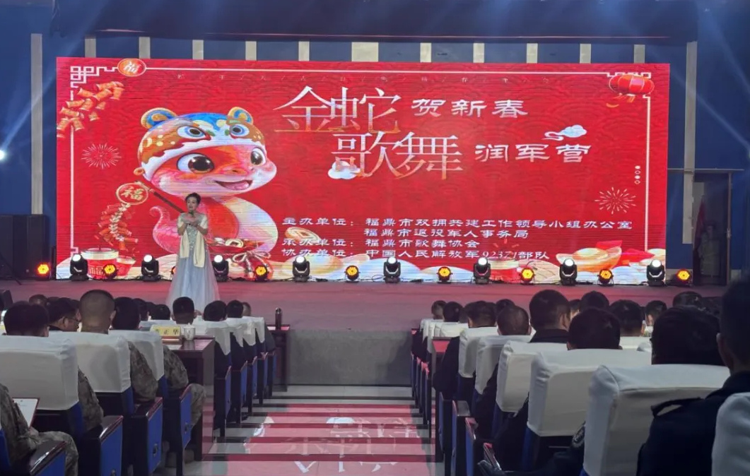 2月10日,由福鼎市双拥办、福鼎市退役军人事务局主办,福鼎市歌舞协会承办的“金蛇贺新春 歌舞润军营”庆新春文艺演出在驻鼎部队礼堂举行。此次活动是福鼎市双拥办创新双拥共建形式的生动实践,进一步巩固了“同呼吸、共命运、心连心”的军政军民关系,为福鼎市争创双拥模范城注入新活力。