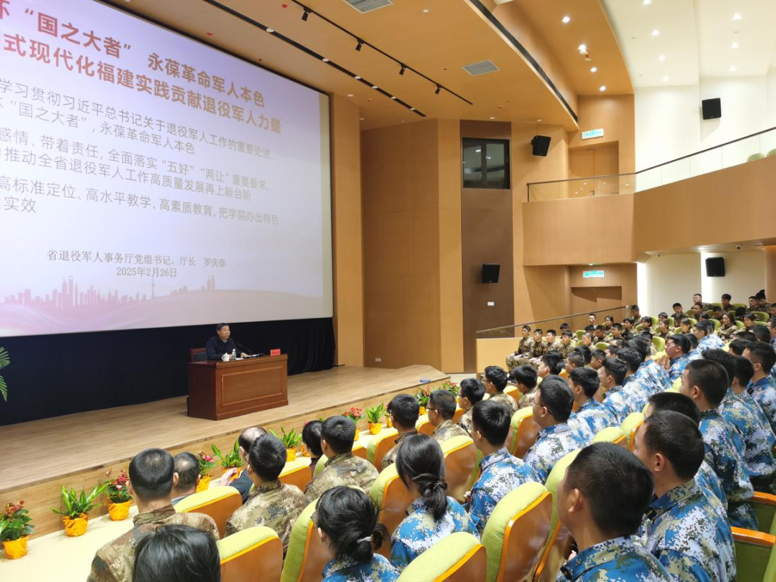 罗庆春厅长结合福建退役军人工作实际和自身的思考感悟,向学员们阐述了习近平总书记关于退役军人工作的重要论述的科学内涵、精神实质、实践要求;立足我省独特的红色基因、独特的政治优势、独特的历史使命,介绍了新时代新福建退役军人工作高质量发展的目标要求、工作思路和实践成效;围绕把退役军人教育学院办出特色、办出实效,提出“高标准定位、高水平教学、高素质教育”的具体建议。学员们纷纷表示,授课内容丰富、主题鲜明、深入浅出、深受启发,一定会牢记当兵的经历,珍惜学习时光,离军不离党、退役不褪色,做一个有理想、有担当、有作为的新时代退役军人,为中国式现代化福建实践贡献智慧和力量。