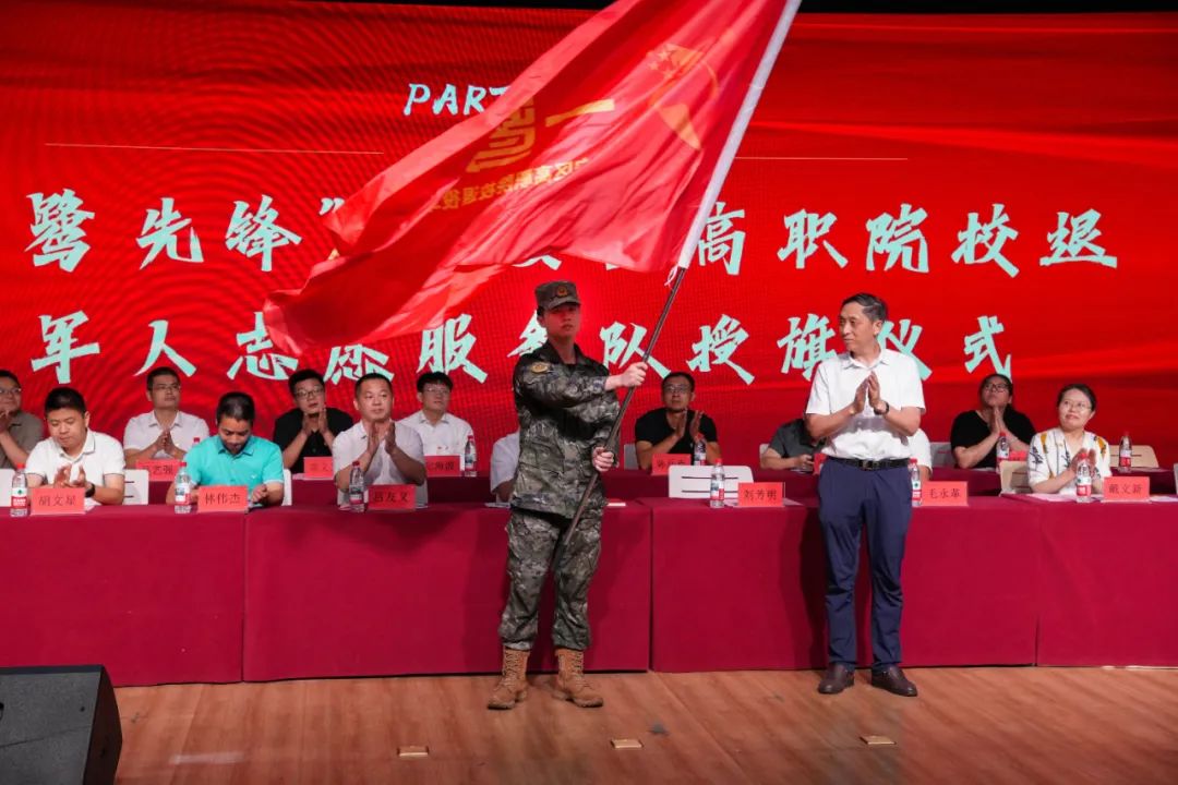 近日,“一鹭先锋”翔安区高职院校退役军人志愿服务队授旗仪式在厦门南洋职业学院举行。现场分别向厦门南洋职业学院、厦门海洋职业技术学院、厦门华天涉外职业技术学院退役军人代表授予“一鹭先锋”队旗。