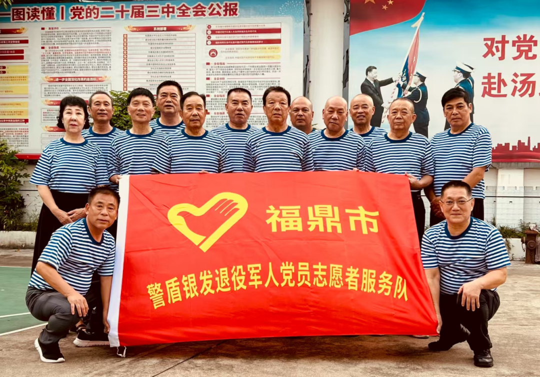 近日,“福鼎市警盾银发退役军人党员志愿者服务队”在福鼎市公安局离退休民警活动中心正式组建。该服务队由16名公安局退休民警中的退役军人、党员组成,将投身社会综合治理、文明城市创建等工作。
