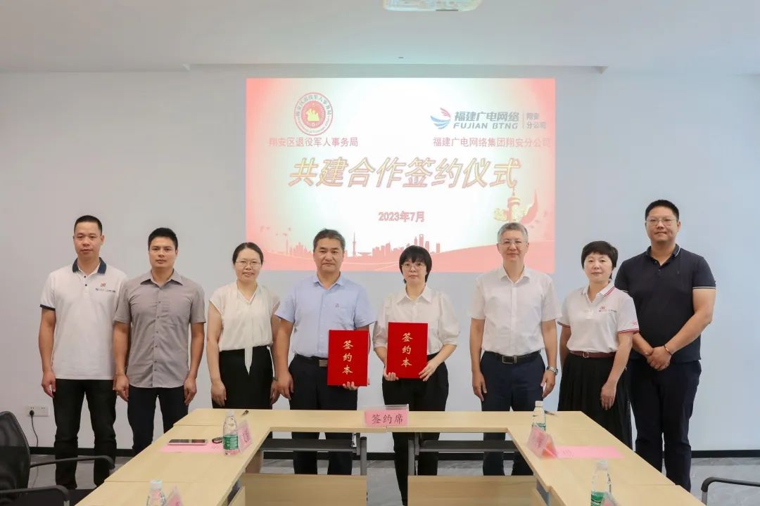 当天,翔安区退役军人事务局分别与福建广电网络集团翔安分公司、厦门市鹭江公证处等企业签订共建合作协议,并前往5家新型退役军人服务站举行揭牌仪式。