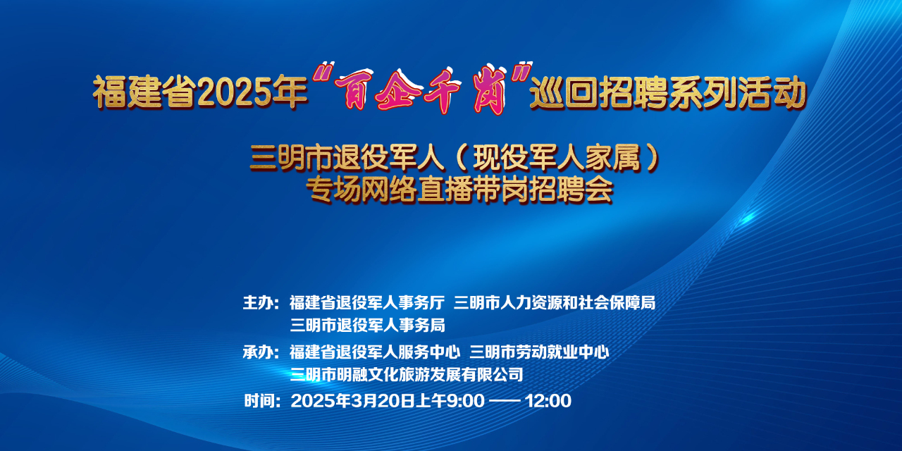 三明市退役军人(现役军人家属)专场网络直播带岗招聘会