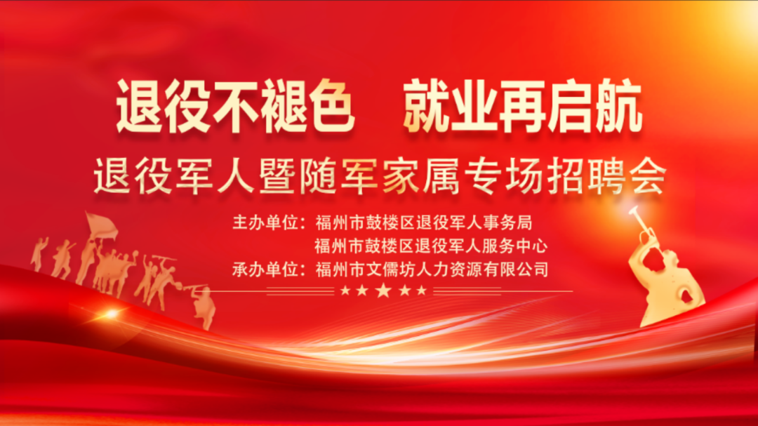 为促进退役军人高质量充分就业,福州市鼓楼区退役军人事务局、鼓楼区退役军人服务中心将于3月29日起举办退役军人暨随军家属专场招聘会活动