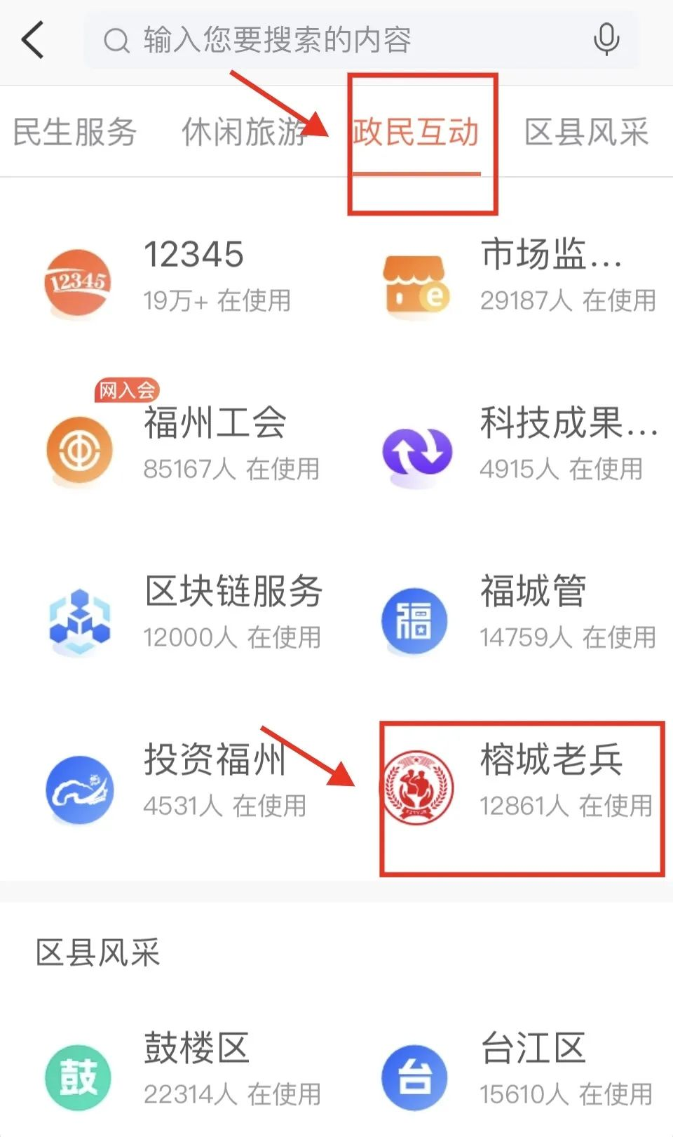 打开“榕城老兵”一体化平台