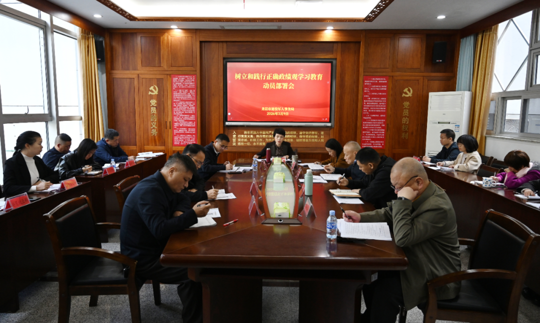 3月9日,龙岩市退役军人事务局召开党组(扩大)会议,深入学习贯彻习近平总书记关于树立和践行正确政绩观的重要论述及中共中央办公厅《关于在全党开展树立和践行正确政绩观学习教育的通知》,认真落实中央和省委、市委党的建设工作领导小组会议精神,研究部署学习教育工作。