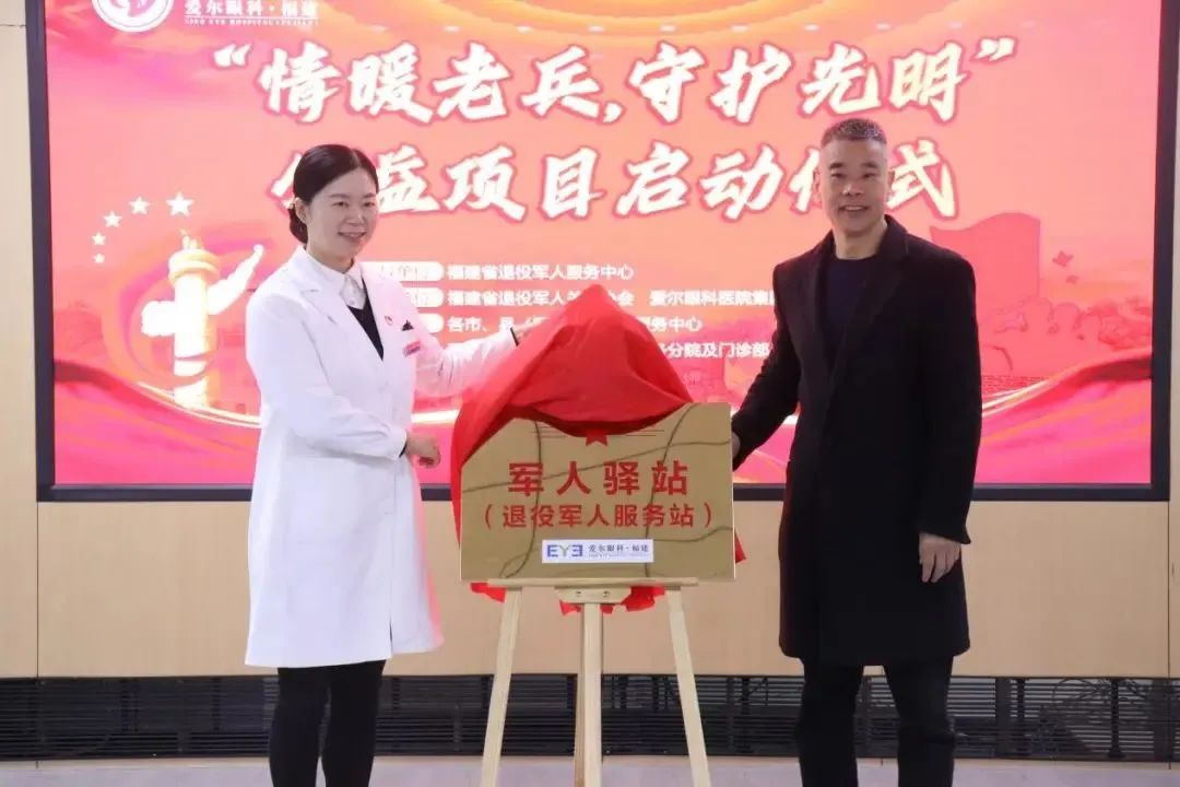 2月15日上午,省退役军人关爱协会、爱尔眼科集团福建省区联合举行“情暖老兵·守护光明”公益行动启动仪式,省退役军人事务厅党组成员、副厅长陈浩参加活动并讲话。省退役军人事务厅和爱尔眼科集团福建省区领导共同为爱尔眼科集团福建省区成立的“军人驿站(退役军人服务站)”揭牌。省退役军人关爱协会与福州爱尔眼科医院签订双方合作协议,推出多项优待服务,包括为应征青年、军人军属、退役军人及其家属、“三属”和其他优抚对象等提供免费眼健康体检、眼病手术公益补助、配镜优惠及开通就医绿色通道等。