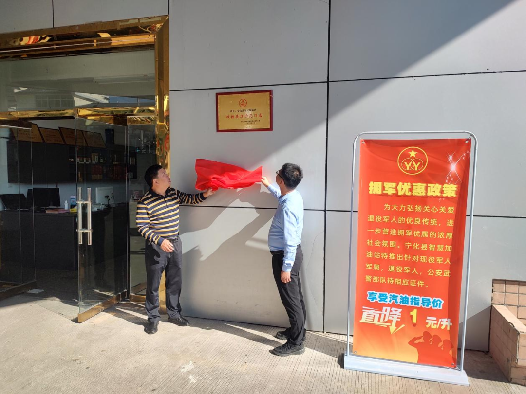 11月1日,福建省三明市宁化县安乐镇军民加油站双拥共建示范门店正式揭牌成立。这是三明市宁化县成立的首家拥军加油站,也是宁化县贯彻落实“深学争优、敢为争先、实干争效”行动和建设退役军人新型服务站,创新服务退役军人新路径的一项务实举措。