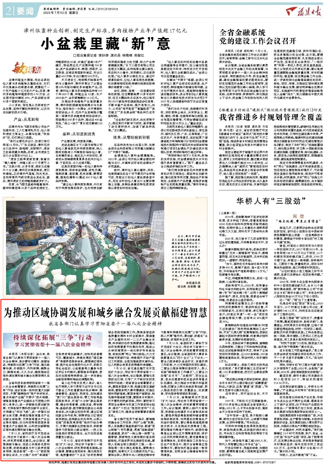 7月11日,省民政厅召开党组会议,传达学习省委十一届八次全会精神,研究贯彻落实意见。会议指出,要围绕城乡融合,促进公共服务优质均衡发展,积极构建县乡村三级养老服务网络,推进县域“一老一小”家政服务综合试点,大力推广农村“幸福里”互助养老等创新模式,加快形成普惠可及、覆盖城乡、持续发展的“福见康养”幸福养老服务体系。要围绕区域协调,提升社会治理现代化水平,积极引导社会组织、公益慈善等力量参与老区苏区乡村振兴。要围绕共同富裕,更加关注困难特殊群体,进一步完善社会救助保障标准动态调整机制。