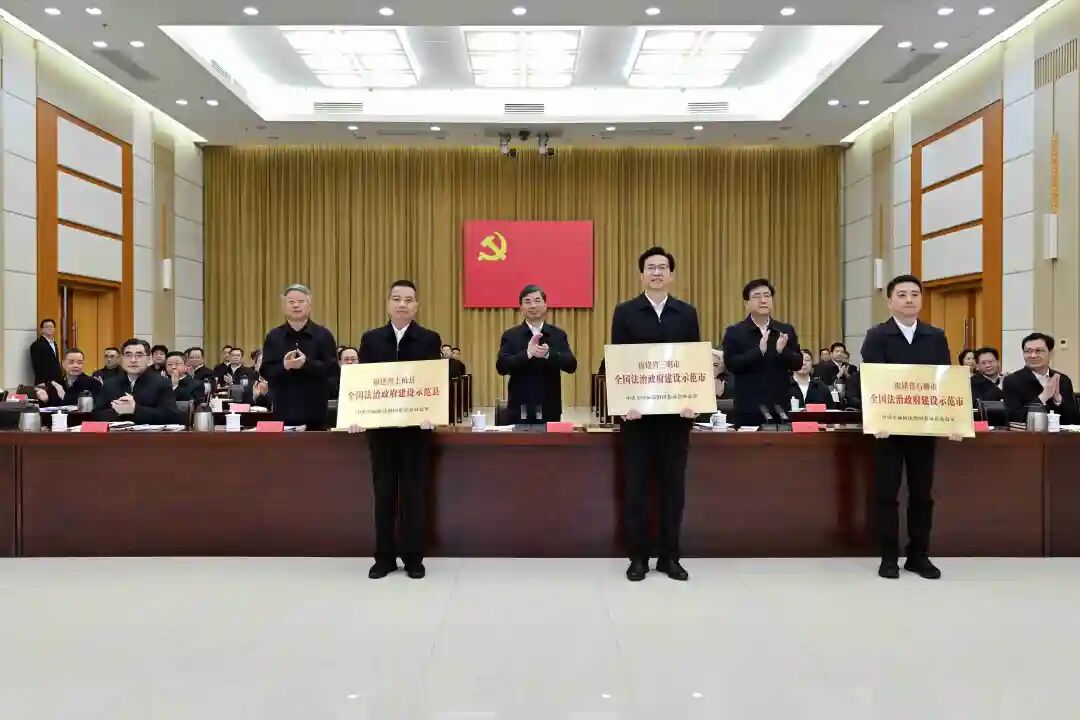 会议通报了我省法治督察情况,为我省获得第三批全国法治政府建设示范地区和项目命名的单位授牌。省纪委监委、省司法厅、省生态环境厅和福州市政府、三明市委、晋江市委、上杭县委的负责同志作了交流发言。