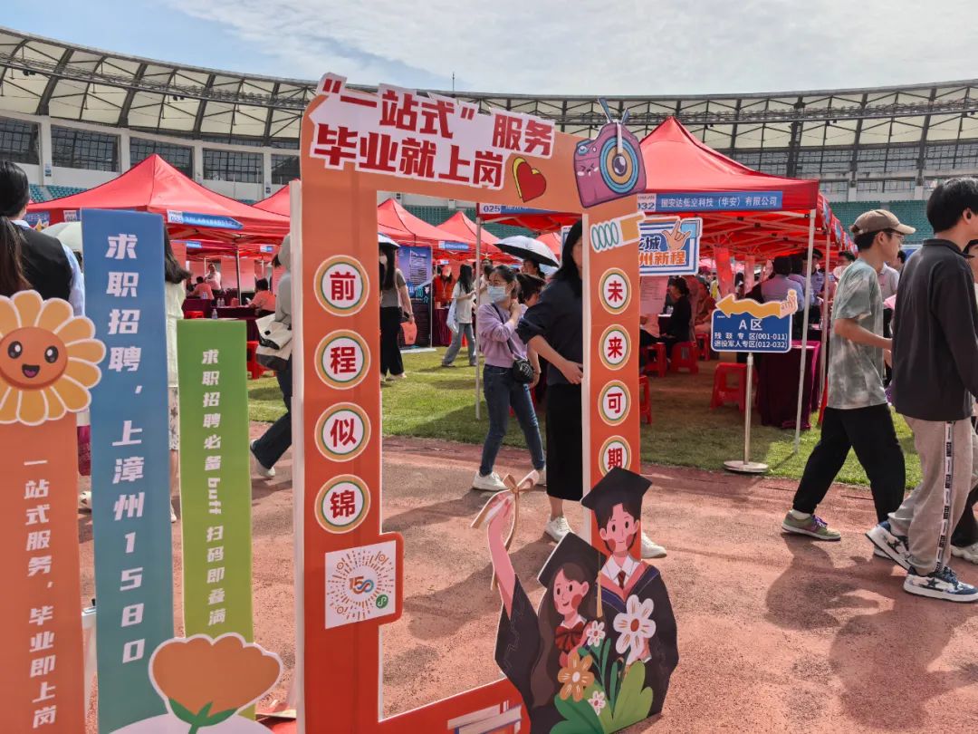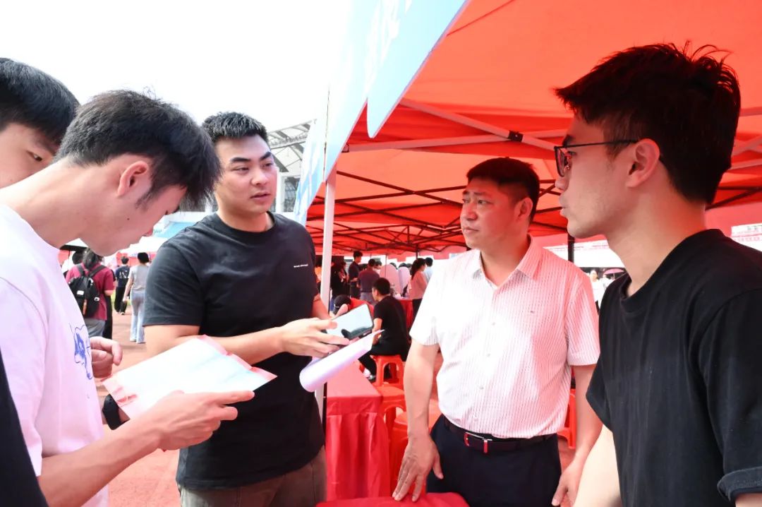 4月17日上午,由漳州市人力资源和社会保障局、市教育局、市国资委、团市委、市退役军人事务局、市残联、市妇联等单位联合主办的漳州市2025年“书记市长送岗留才进校园”大型招聘会在漳州市体育中心举办。漳州市委书记王进足、市长魏东等领导莅临招聘会现场指导,督导推进高校毕业生就业工作。