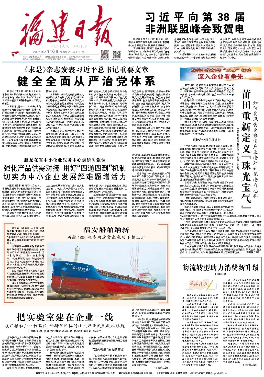 新华社北京2月15日电 2月16日出版的第4期《求是》杂志发表中共中央总书记、国家主席、中央军委主席习近平的重要文章《健全全面从严治党体系》。