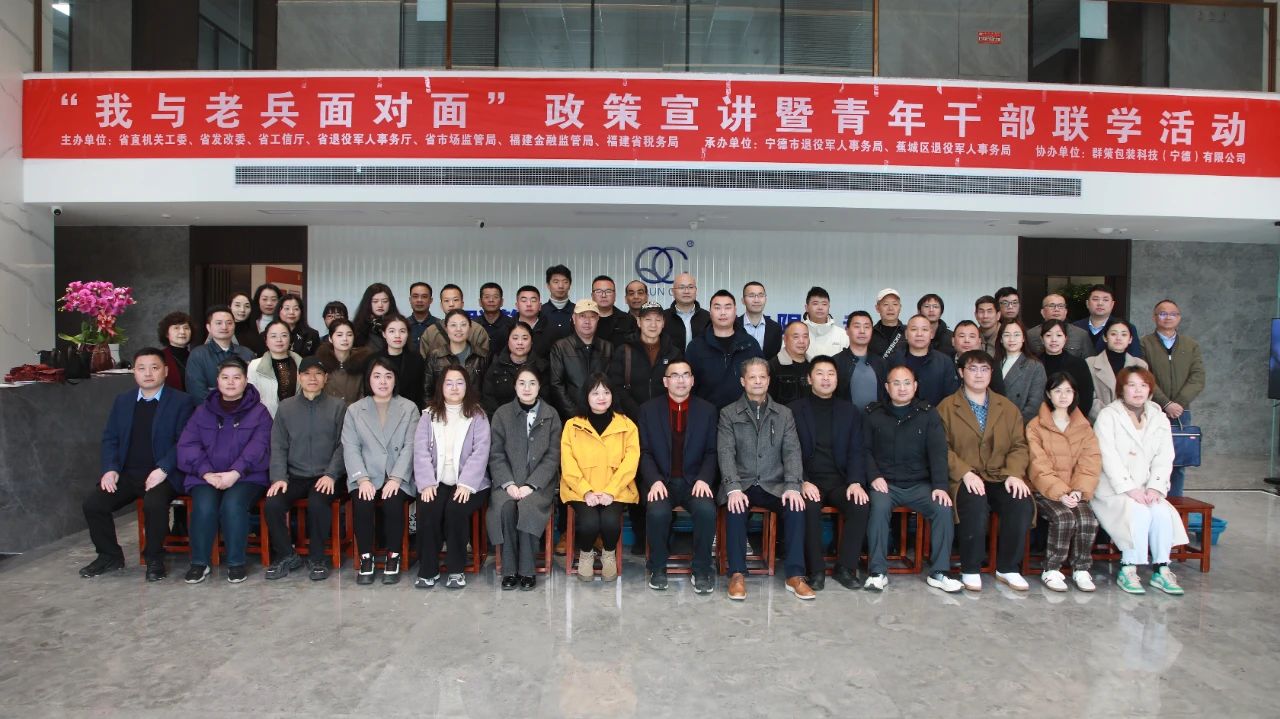 宣讲活动在当地军创企业,群策包装科技(宁德)有限公司一楼会议室举行,分为“面对面政策宣讲”“送金融服务进军创企业”“政企座谈”三个环节。