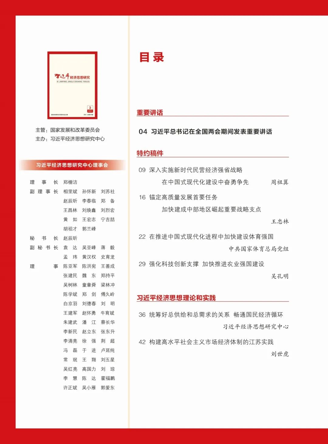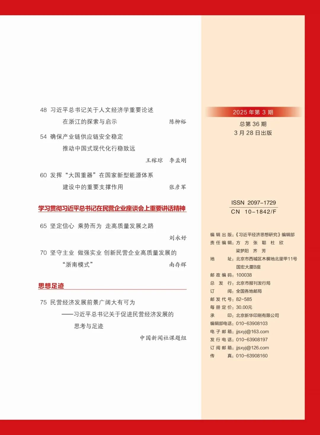 2025年第3期《习近平经济思想研究》期刊刊发了福建省委书记、省人大常委会主任周祖翼同志的署名文章:《深入实施新时代民营经济强省战略在中国式现代化建设中奋勇争先》,全文如下: