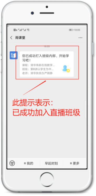 请用微信扫描班级二维码并关注雨课堂公众号,加入直播班级(清华军转网络学堂-退役军人就业创业大讲堂-后疫情时代的家庭财富管理与创业投资风险防范)。出现如图1所示的界面,即表示成功加入本课程班级。