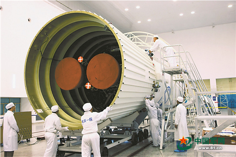 长征三号甲系列运载火箭在国家重大工程建设中发挥了关键作用,耀眼成绩背后,有一支优秀的运载火箭研发团队。这是在西昌卫星发射中心总装车间,科研人员正在对尾裙。新华社发