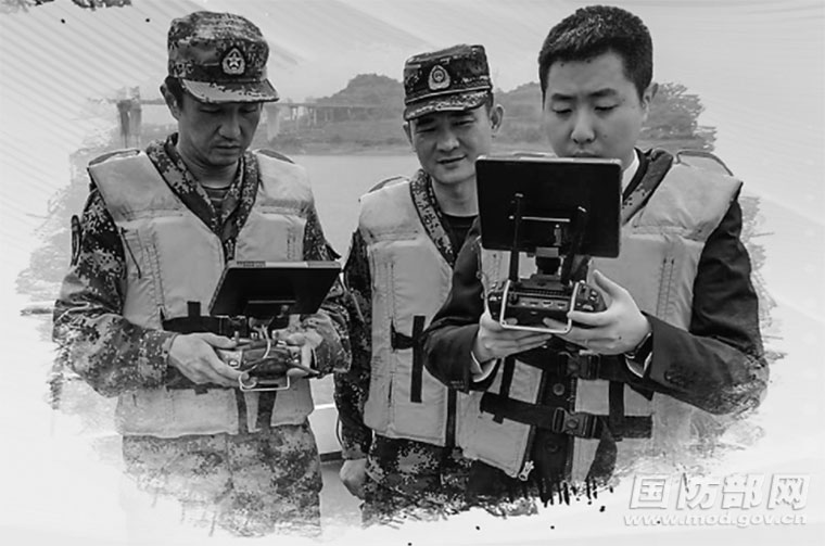 在长江重庆段水域军事设施保护专项巡查活动中,成都军事检察院会同地方检察机关利用无人机进行水上巡查。韩科 摄