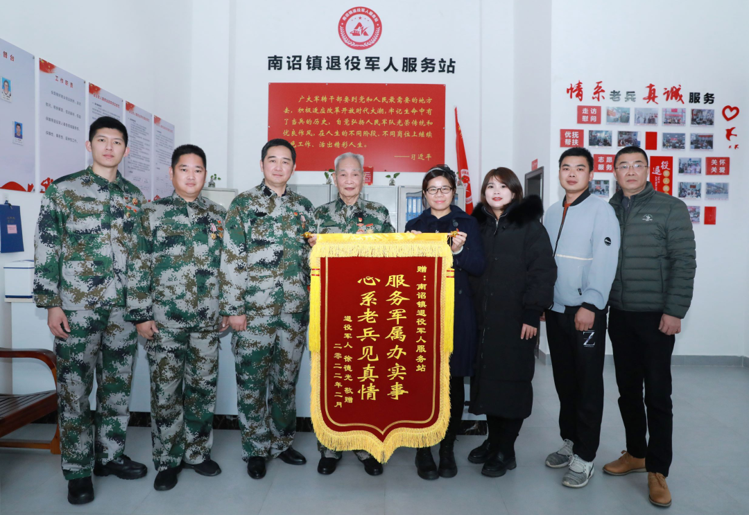 去年春节假期后的第一个工作日,诏安县南诏镇退役军人服务站就收到一面印有“服务军属办实事,心系老兵见真情”的特殊锦旗。原来家住南诏镇秀峰社区的徐德光祖孙三代都曾在部队服役,而且都是功臣,自从老伴走后,为不拖累儿女,坚持一个人生活。一位老兵得知徐德光的情况后,给南诏镇退役军人服务站写了一封信。服务站干部收到信后,经常主动上门看望,协调医生上门服务、检查身体,对他精心照护,力所能及地帮他解决一些实际困难,这让徐老十分感动。为此,86岁的老兵徐德光带着同为退役军人的儿子徐火平、徐诏辉和孙子徐超送来了锦旗。