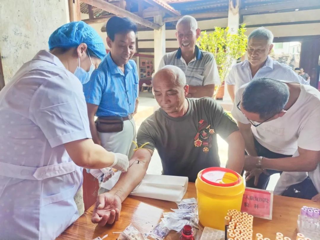 在人头攒动的活动现场,医疗巡诊队免费开设专家坐诊、赠送药品、彩超、X光、心电图、生化全套、血常规、乙肝两对半、HP(幽门螺杆菌尿素酶抗体定性检测)、肿瘤标志物筛查、发放健康宣传手册等10多个诊疗项目,为老兵们提供全面的健康检测。
