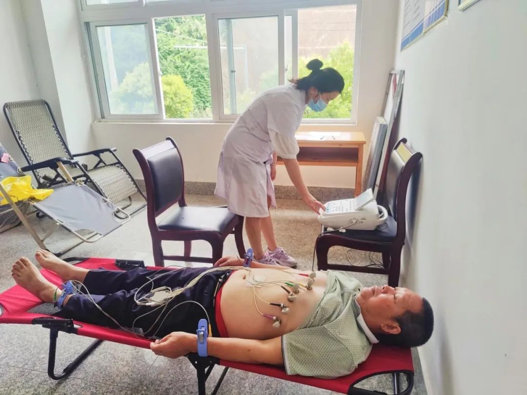 6月13日,在朋口镇朋兴村党群服务中心巡诊点,82岁的烈士遗属林求生常年被腰痛困扰,在经过影像学及临床体格检查后,医生给他开具了处方药并叮嘱他正确服药及防护知识。他感慨道:“平时去趟省城不容易,不到疼痛难忍不会想着去,而且大医院专家号太难抢到,我们老人家不懂高科技,手机预约也不会操作,这看病问题还真成了一个‘心病’,前几天通知说今天省里开着巡诊车来送健康,刚才专家的叮嘱让我总算心安了!”