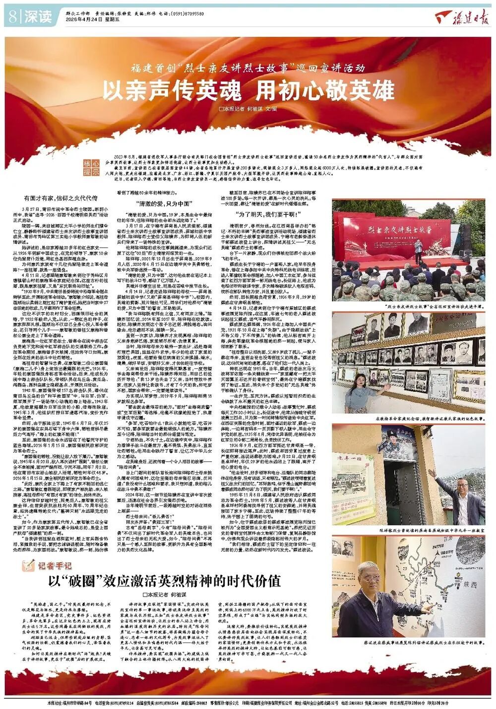 福建首创“烈士亲友讲烈士故事”巡回宣讲活动