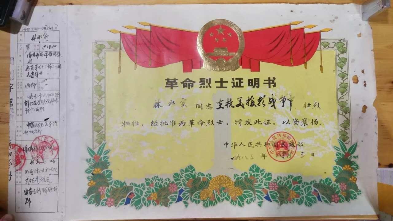 “我们全家人听说叔公一枚印章在烈士遗物中,非常感动。谢谢党和国家没有忘记牺牲的烈士!” 林水实的侄孙林树新激动地告诉记者。