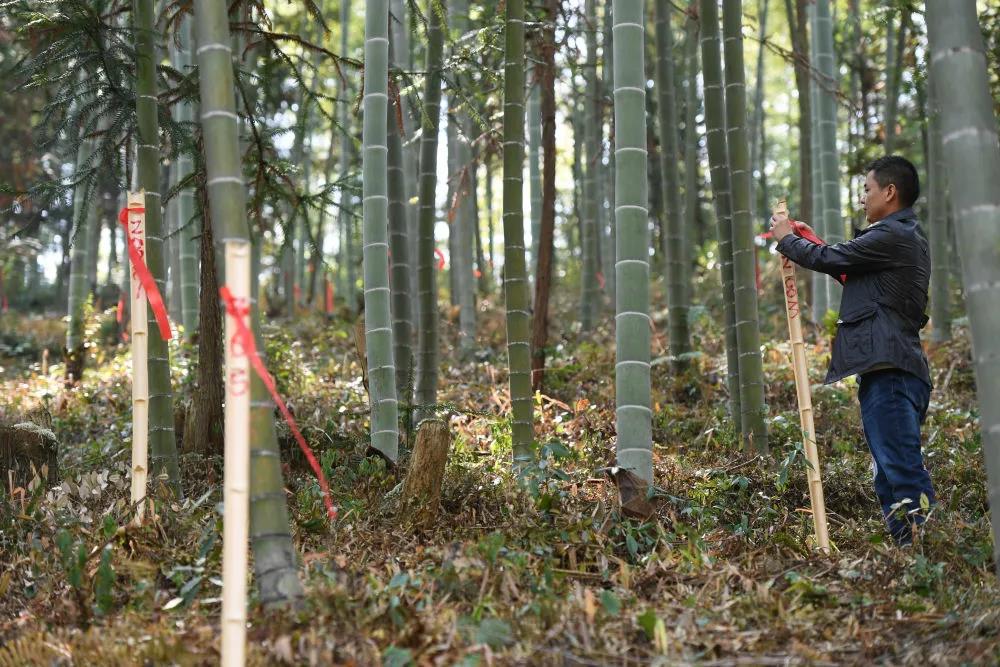 △2019年10月24日,在福建省武夷山市洋庄乡张山头红军墓群,张山头所在的小浆村党支部书记修利兴在整理标记着墓冢位置的红飘带。(新华社记者宋为伟摄)