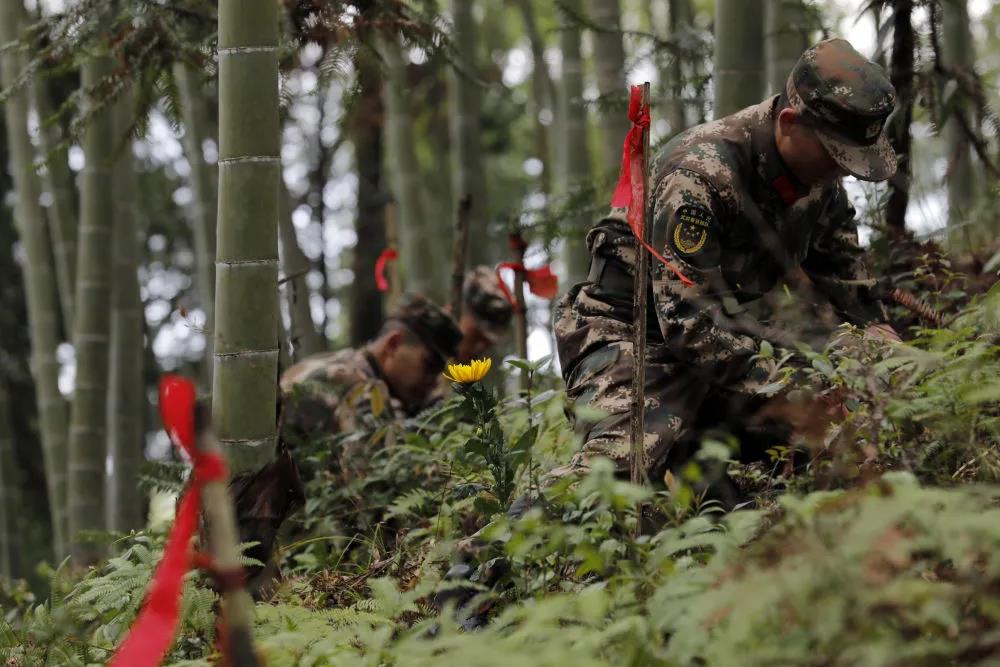 青山处处埋忠骨,何须马革裹尸还。近些年来,为了更好缅怀、祭奠英烈,当地的村民们还依照清明风俗,劈开竹子取“生”竹片为“碑”立于墓前,竹片上用红漆标出编号,并系上红飘带。