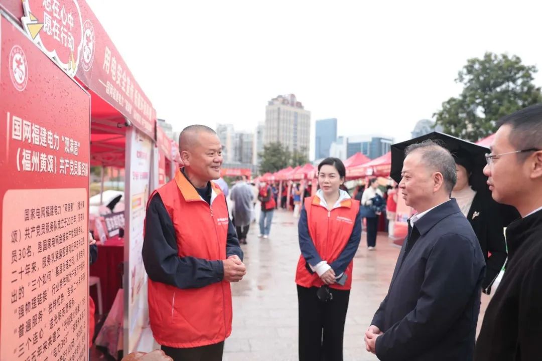 2025年3月4日,黄颂向福州市委社工部部长张炜明等领导介绍服务队