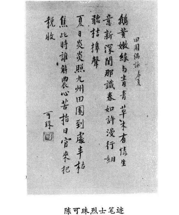 然天不遂人愿,小可珠11岁时,陈宜珊、陈宜辉两兄弟相继去世,家中瞬间失去了收入来源。小可珠靠着父亲留下的一点积蓄勉强读完了小学,便无法再继续学业,只得留在家中帮着母亲操持家务,学习纺织纱布。但这并没有压垮小可珠的好学之心,她每天总是天不亮就起床,读诗书,练书法,遇到不懂的地方就向私塾先生求教,艰苦的生活磨炼出她吃苦耐劳的品格,也使她有机会接触社会、接触穷苦农民,也因此对社会现状产生了强烈的不满情绪。