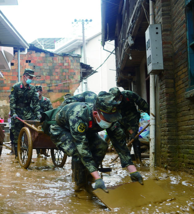 2024年6月,闽西北遭遇强降雨自然灾害,武警官兵迅速投入抢险救援,帮助受灾群众重建家园。