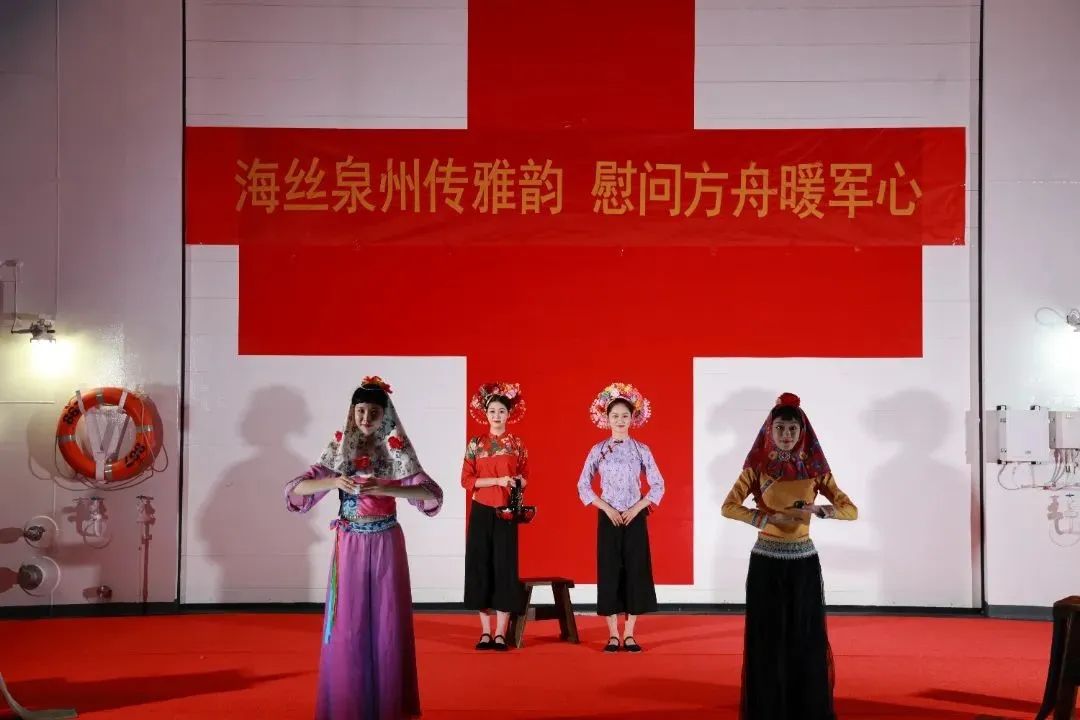 近日,泉州市双拥办携泉州歌舞剧院、泉州滨海大酒店等组成泉州非遗“文艺轻骑兵”,登上“城舰共建”结对对象海军丝路方舟号医院船,用一场沉浸式闽南文化体验,让官兵们在深蓝海域感受泉州千年海丝魅力。