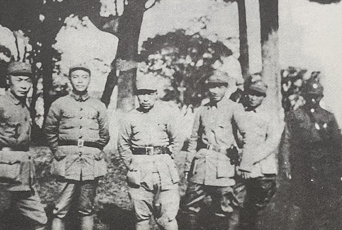 新四军第六团东进江南苏(州)、常州、太仓地区时,陈毅、刘炎、刘飞、叶飞、吴焜、乔信明(左起)合影。图源:福建档案