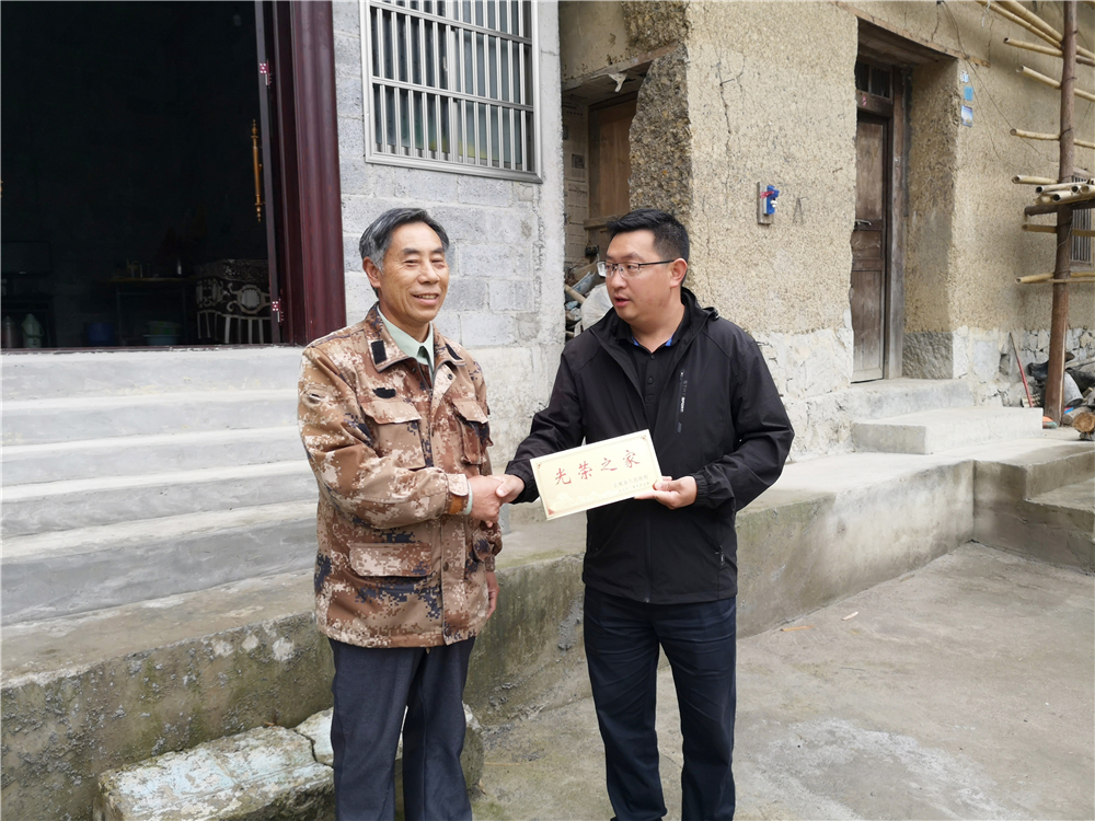 云南省昭通市永善县墨翰乡乡长韩维树为参战退役老兵胡正凯悬挂光荣牌