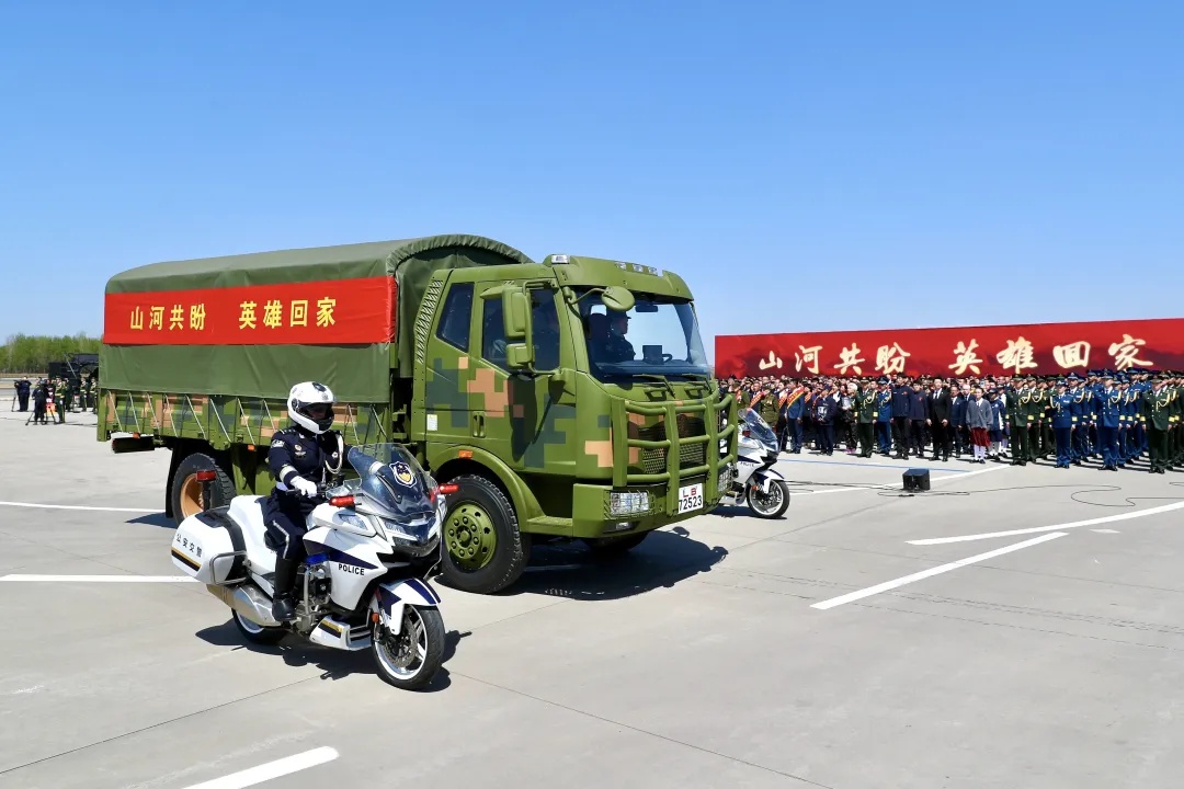 魂兮归来,增耀国华。迎回仪式结束后,志愿军烈士遗骸棺椁由70辆警用摩托车组成的骑警车队护送前往沈阳抗美援朝烈士陵园。根据安排,23日10时,第十三批在韩中国人民志愿军烈士遗骸安葬仪式将在该陵园志愿军烈士纪念广场举行。
