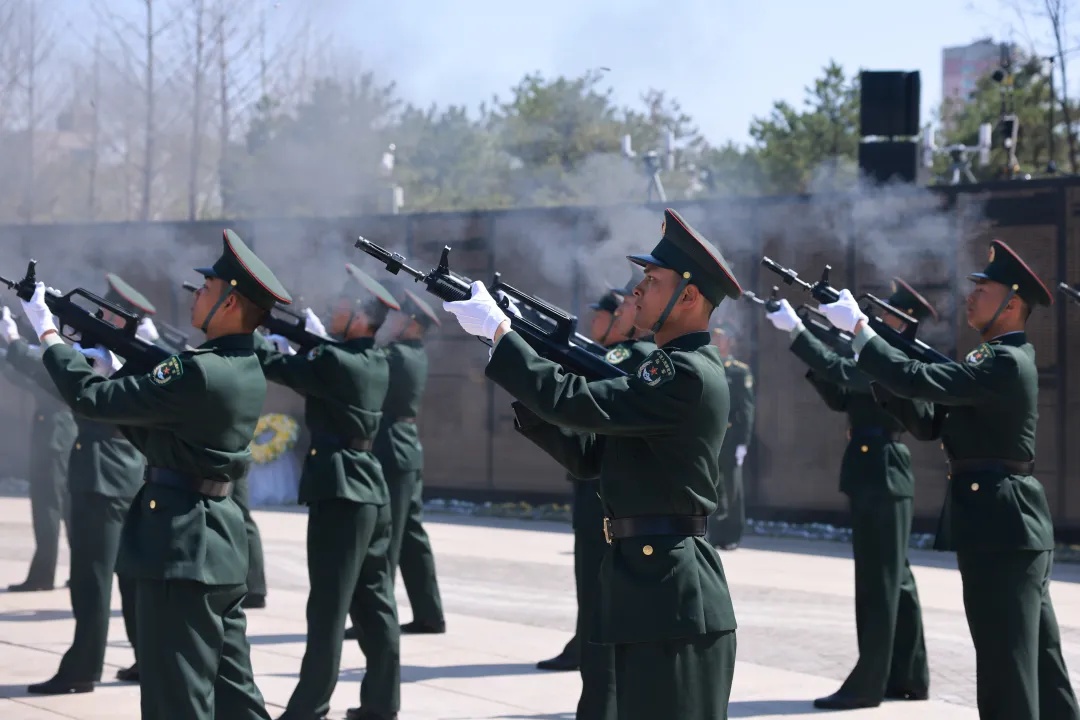 4月23日上午,第十三批在韩中国人民志愿军烈士遗骸安葬仪式在沈阳抗美援朝烈士陵园举行。退役军人事务部党组书记、部长裴金佳出席仪式并致祭文。曹舒昊 摄