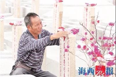 清扫落叶灰尘、擦拭墓碑……老叶每天到陵园的第一件事,便是带上抹布、扫把,把陵园打扫干净。虽然陵园的面积只有2000多平方米,不过他一天要来回“巡视”好几遍,常常连水都顾不上喝。“这几天陆陆续续有老百姓到陵园祭扫,风一吹,一些墓纸就会飘进烈士墓区,我得多打扫几次,让地面保持整洁。”老叶说。