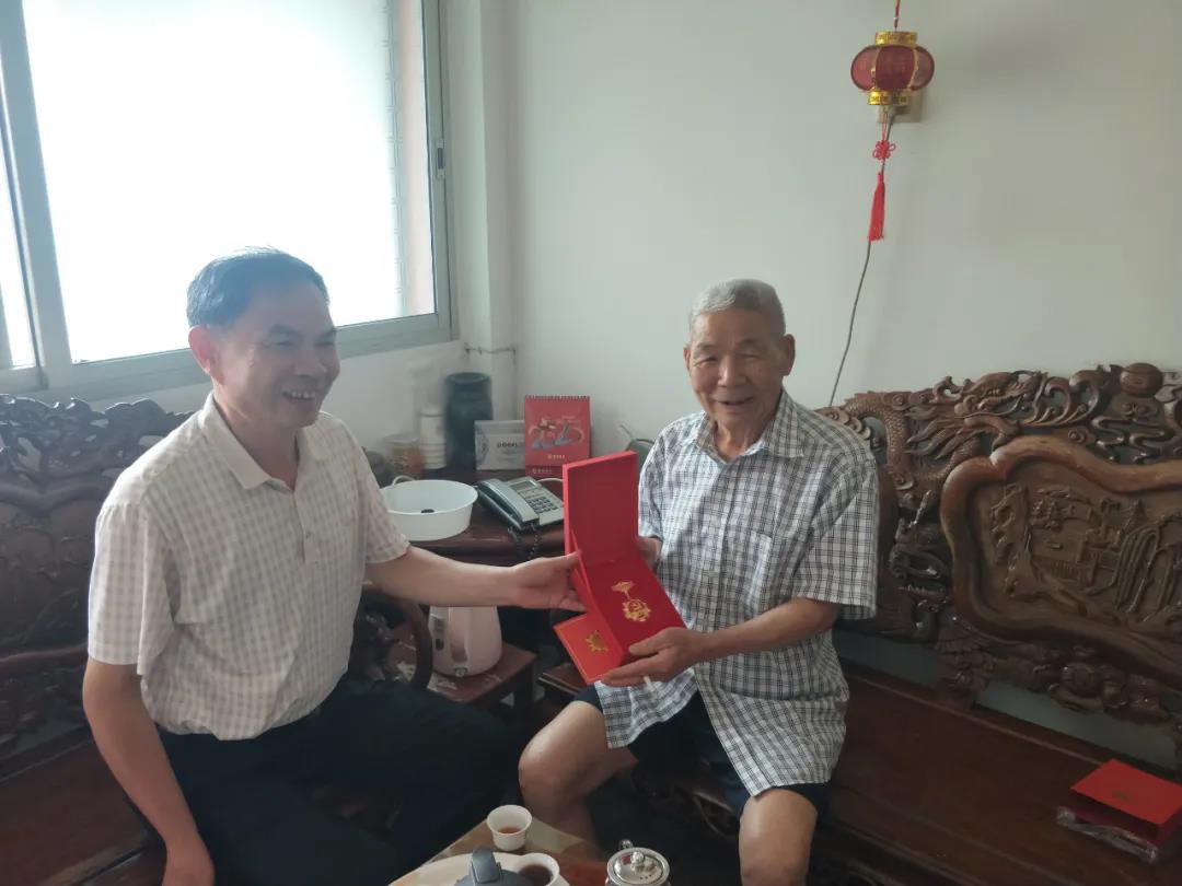 6月22日,市退役军人局领导分赴市军休所、第二军休所,为行动不便或其它原因未参加颁发仪式的军休干部老党员颁发纪念章。每到一处老党员家中,局领导都要亲自将纪念章颁发到他们手中,帮助他们佩戴在胸前,并对他们50年来为党、为人民所做的贡献表示衷心的感谢,同时亲切地慰问老党员们的身体、生活状况,并嘱咐他们保重身体,希望继续发挥余热,为漳州的社会发展和退役军人各项工作建言献策。