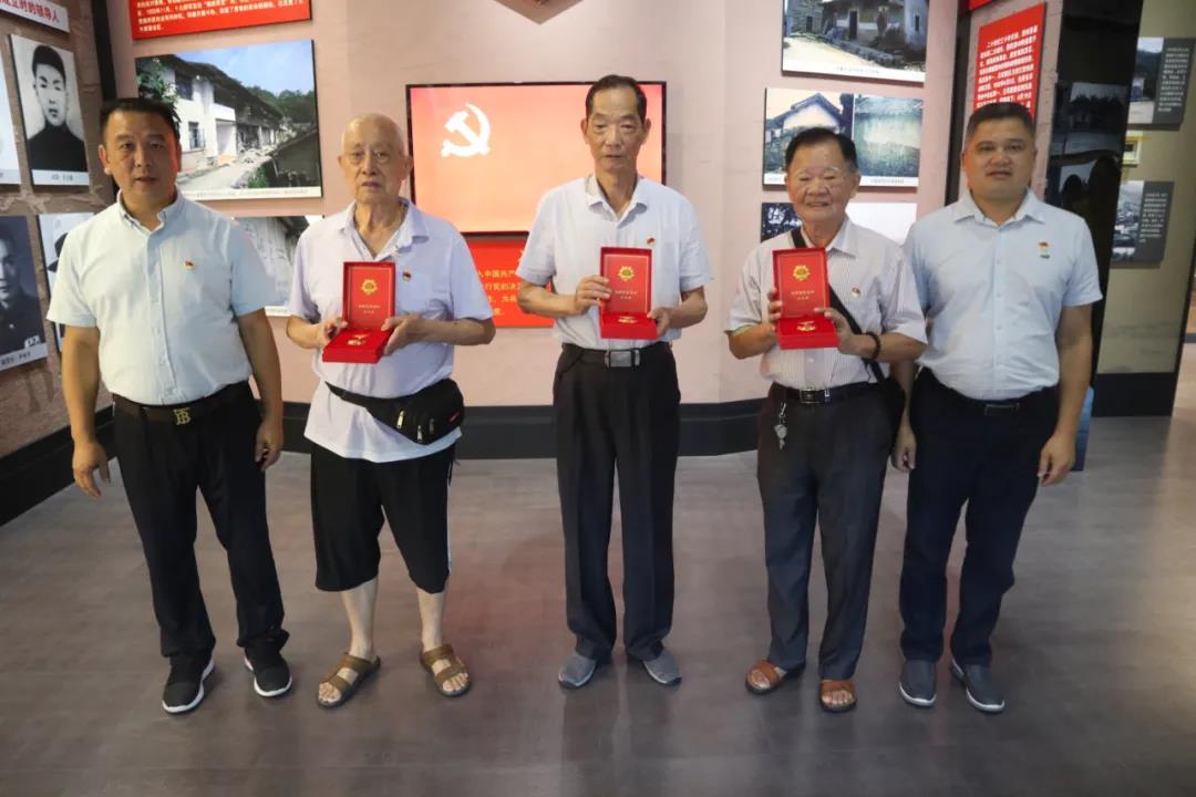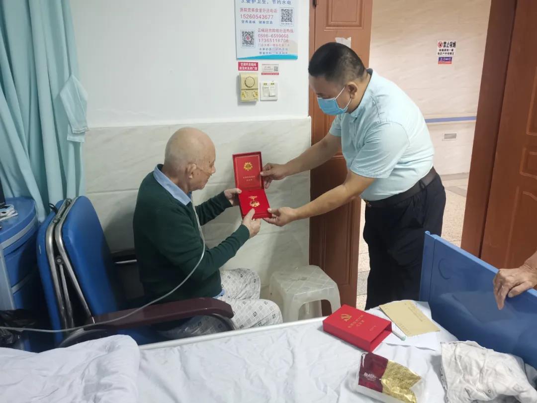 6月24日,龙海区退役军人局、区军休所在月港双拥公园(龙海区革命烈士陵园)集中为军休干部许清溪、蓝开木、林郑成颁发“光荣在党50周年”纪念章并重温入党誓词。之后,军休干部们佩戴纪念章参观了龙海革命历史陈列馆,重温那段令人难忘的革命岁月。同日,区退役军人局、区军休所还到军休干部方亚周所在医院、黄振生家中颁发纪念章。