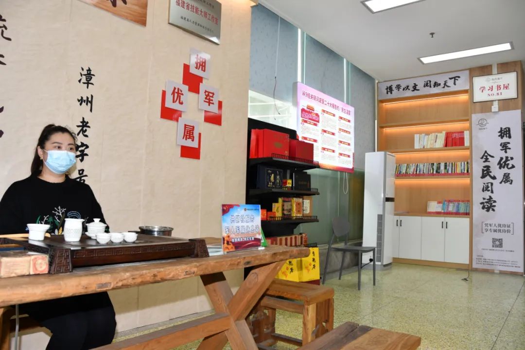 走进中心大厅,引入眼帘的便是写着“情系老兵,真诚服务”的欢迎标,往左走两步,是区供销社设置的军人军属休息站,这里不仅可以免费品茶,还可以享受海西博文图书提供的免费阅读、购书优惠等服务。