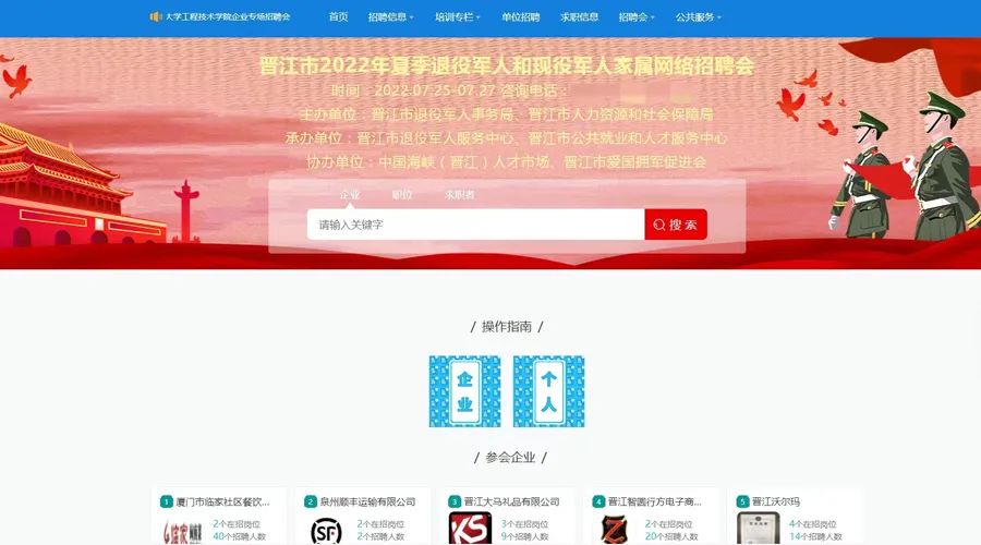 二是积极帮扶退役军人创新创业。一方面是提供平台孵化,退役军人的创业项目在同等条件下可优先入驻由我们运营的中国海峡人力资源服务园以及海峡人才市场各工作部的众创空间。另一方面是提供创业指导,我们与晋江市退役军人事务局共建了“晋江市退役军人就业创业基地”,建立了退役军人就业创业活动室,配备功能齐全的办公设备和工位作为专属活动场地,聘请不同领域的创业优秀人才担任导师,为退役军人提供创业项目评估、开业指导、管理咨询等服务,帮助退役军人提高创业成功率。