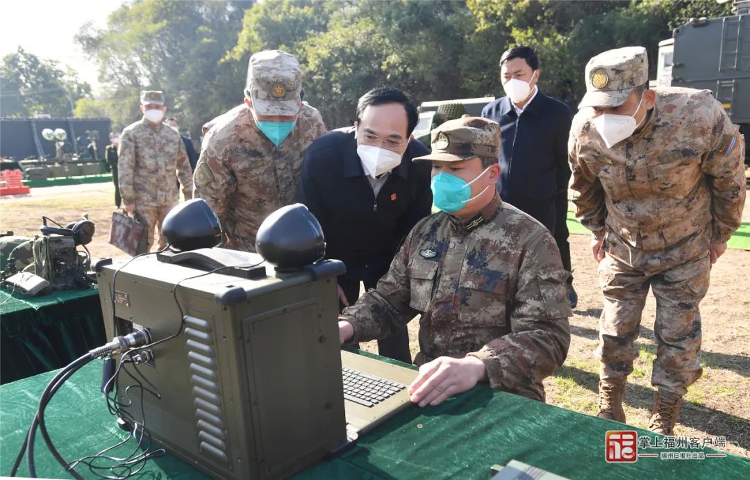 训练场上,整装集合的民兵预备役人员士气饱满、斗志高昂,接到指令后跑步前往指定位置进行武器装备操作使用演示。市领导参观了轻武器、防暴、工程防化、指挥通信、海上侦察救援、防空反导、通用保障等武器装备,认真观摩演示,体验轻武器分解结合等,详细了解民兵预备役人员工作、生活及训练情况,对大家展现出的过硬军事素质、良好精神风貌给予肯定。林宝金代表市四套班子和全市人民对驻榕部队全体官兵、民兵预备役人员保卫国家安全、对福州经济社会发展作出的贡献表示衷心感谢和崇高敬意。