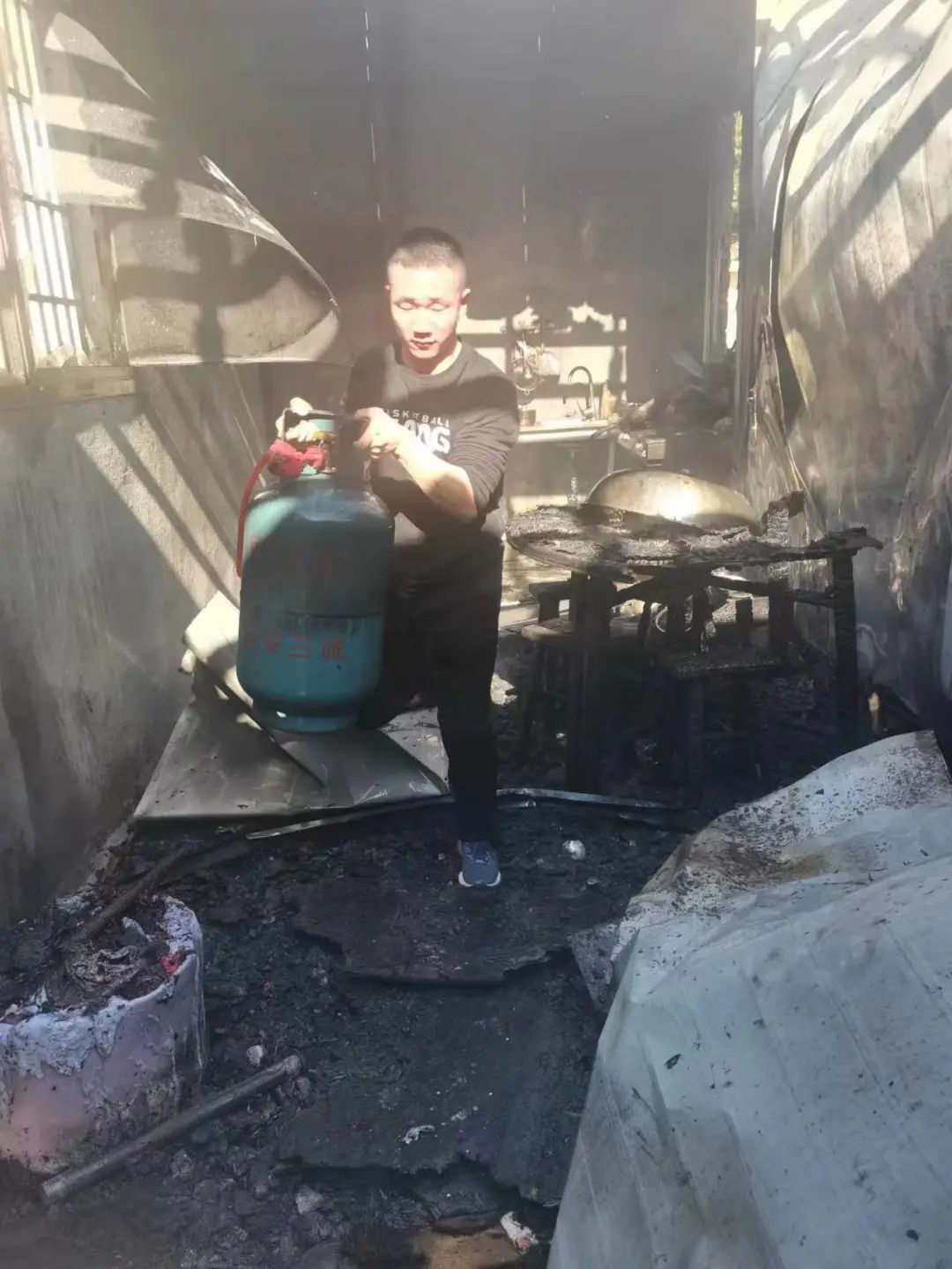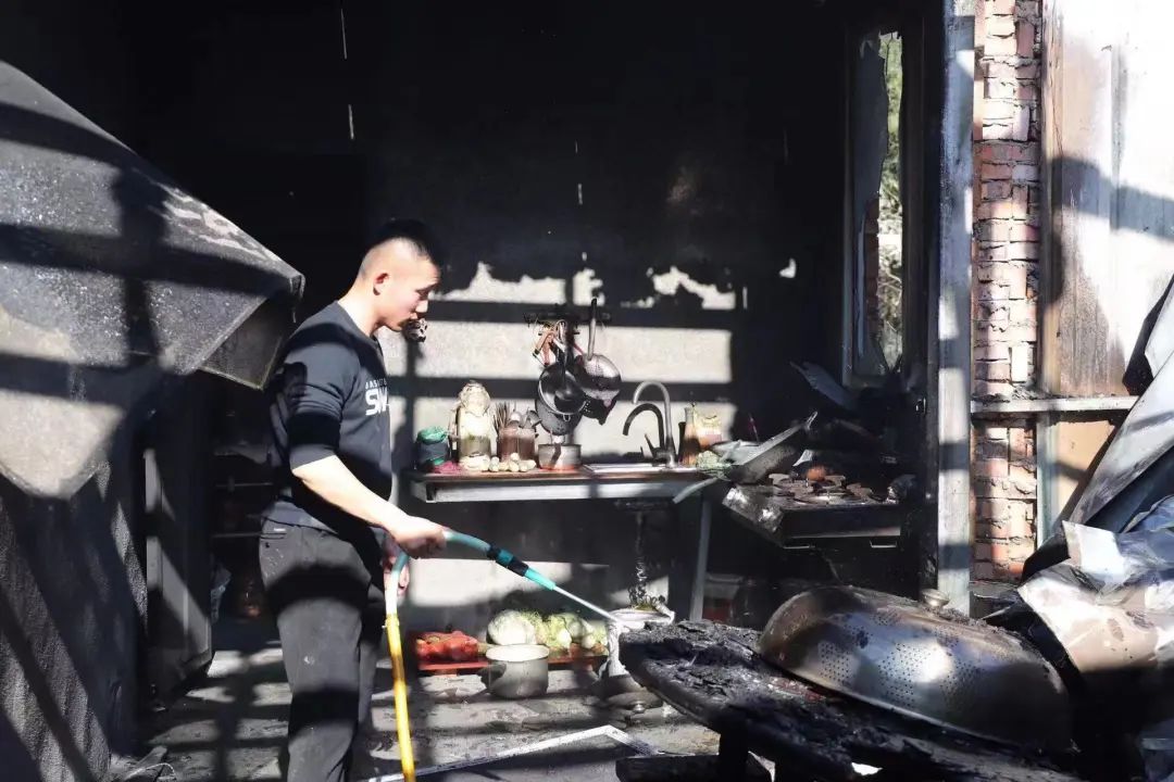 救援期间,王明贵不顾个人安危毅然冲进现场救出独居老人;为防止火情扩大,他还奋不顾身冲进厨房等危险区域,将煤气罐等危险物品迅速搬离现场。