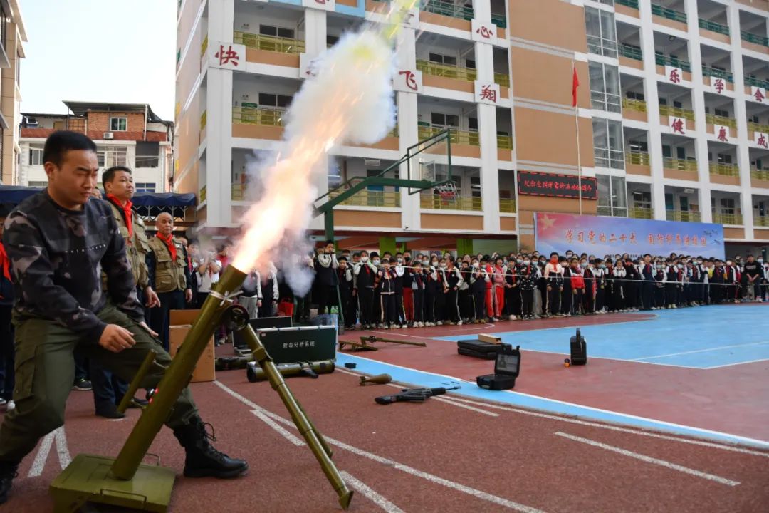 活动前,该校少先队员为参加活动的党员干部系红领巾;活动中,退役军人保障法、普法知识、军事科技等常识穿插全过程,现场传来阵阵欢笑声;科普大篷车的十几种展示教具吸引了不少师生热情参与。