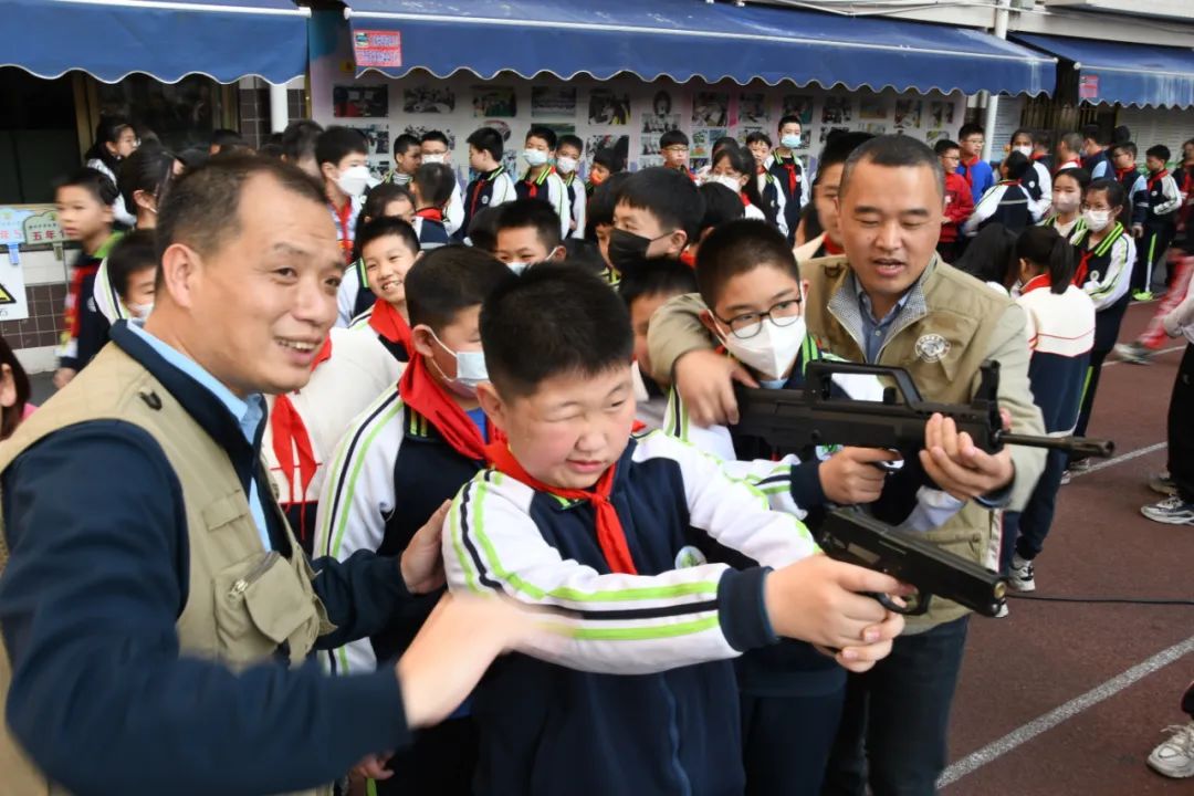 随着“砰、砰、砰……”一阵阵震耳欲聋的枪炮响,现场溅起点点烟花;“10环、9环……”不少学生惊呼,这成绩长大后一定要去报名参军。整个体验过程紧张刺激,但井然有序。五年(4)班学生陈以理开心地说道:“第一次体验模拟射击,没想到第一枪还打中8.5环,听着令人耳鸣的枪响,那种感觉令人回味!”