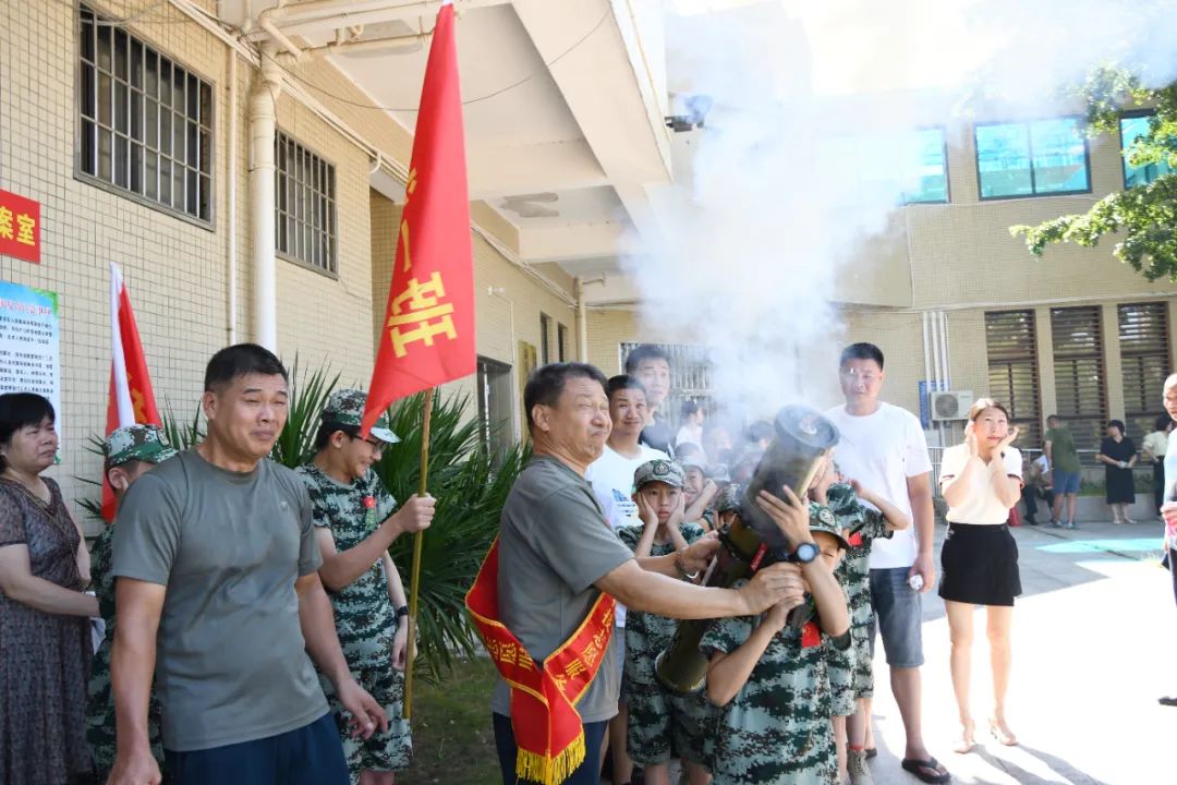 开营仪式上,漳浦县退役军人事务局邀请了相关单位负责人见证荣光时刻,举行了迎国旗仪式,并为教官和学员代表授营旗和班旗,教官队伍还展示了队列训练有关内容。漳州市“移动军事体验站”到场助兴,让学员入营之初便亲身体验“实弹射击”带来的刺激感,现场“军”味浓厚,崇军热情在炮声中高涨。