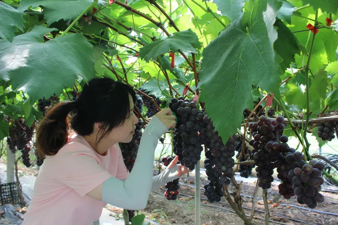 当前正值葡萄成熟上市的季节,走进南平市顺昌县郑坊镇罗坊村达鑫果蔬家庭农场,一排排葡萄架映入眼帘,一串串色彩瑰丽、饱满多汁的葡萄簇拥着从叶子中垂下来,散发着醉人的香气。