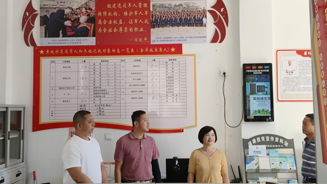仑上村“兵支书”黄俊前及村两委一行12人来到黄地村退役军人服务站参观交流。黄地村“兵支书”、村主任兼退役军人服务站站长刘志宇及村两委成员陪同交流。